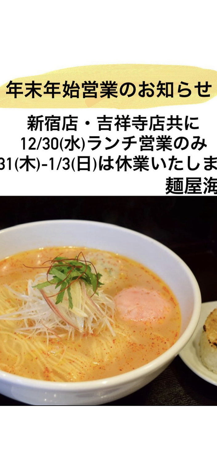 Home お知らせ年末年始営業のお知らせ年末年始営業のお知らせ 2020.12.28 お知らせ Post Share Hatena Pocket RSS feedly Pin it 今年も多数のお客様にご来店いただき、ありがとうございます。年末年始営業のお知らせです。新宿店・吉祥寺店共に 12/30(水)昼営業のみ 12/31(木)-1/3(日) 休業 1/4(月)から通常営業です。2021年もどうぞよろしくお願いいたします。 Post Share Hatena Pocket RSS feedly Pin it